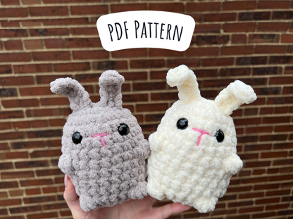 Say hello to Chonky Bunny! This crochet pattern is written in US terminology (English) and includes a list of materials, instructions, and photos to help you along! This is a pattern, not a tutorial, so you will need to have experience with crocheting amigurumi.
