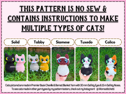 Say hello to the Sitting Kitty! This crochet pattern is written in US terminology (English) and includes a list of materials, instructions, and photos to help you along.