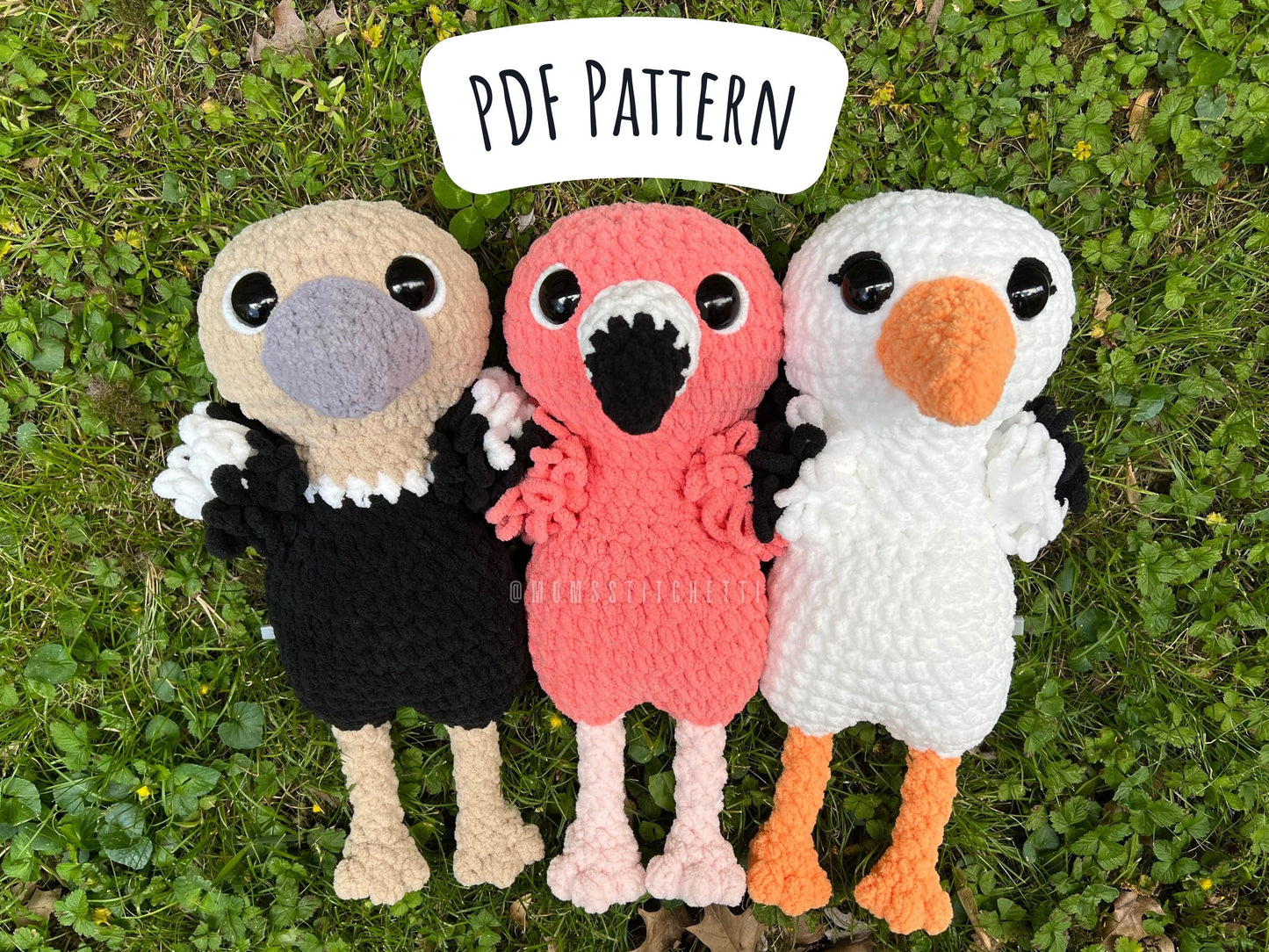 Say hello to the Tall Birds! This 3-in-1 crochet pattern has instructions to make a Flamingo, Ostrich, and Stork. This pattern is written in US terminology (English) and includes a list of materials, instructions, and photos to help you along! This pattern is LOW SEW and works up super fast! You only have to sew the beaks!