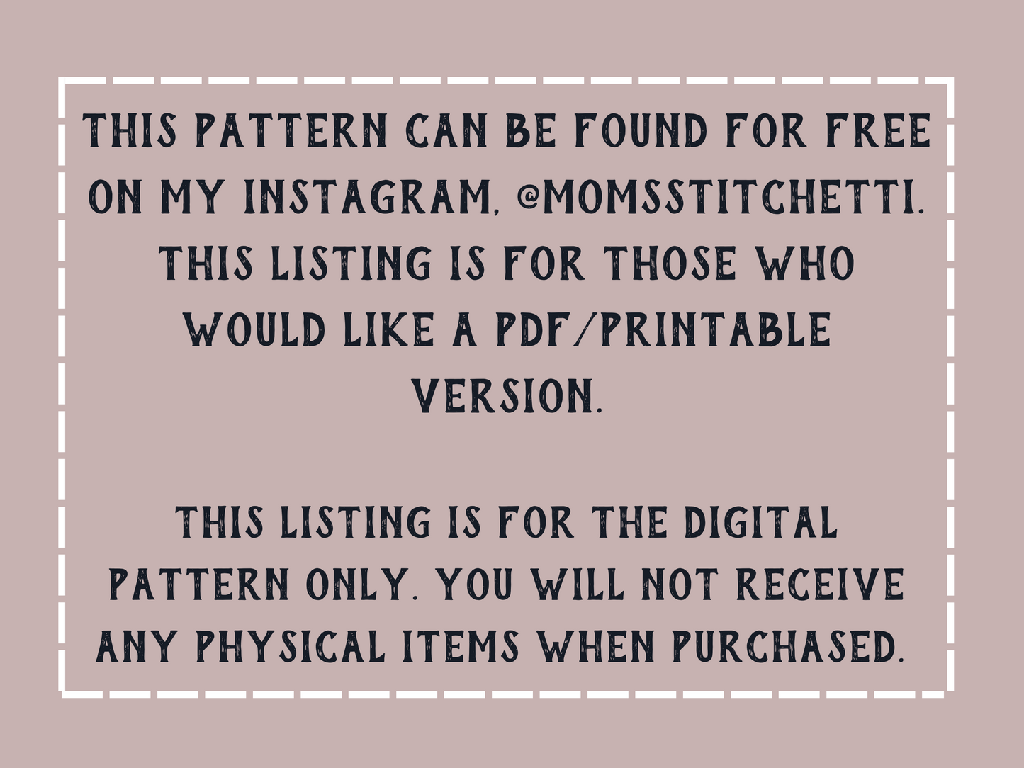 You may sell finished items created from this pattern as long as you provide design credit to Moms Stitchetti. If posting on social media, please tag @Momsstitchetti.