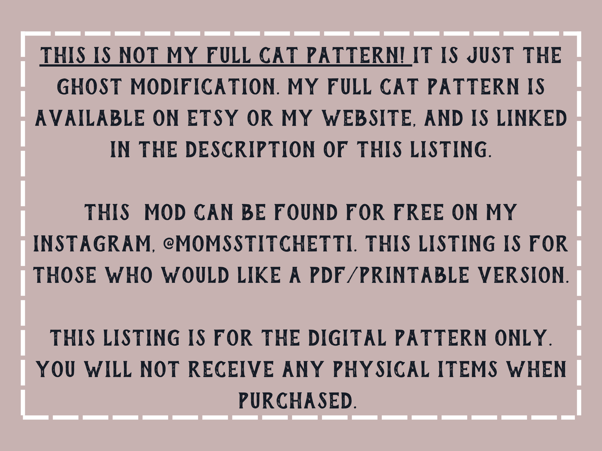 This is not my full cat pattern, it is JUST the ghost modification. My full cat pattern is available here.
