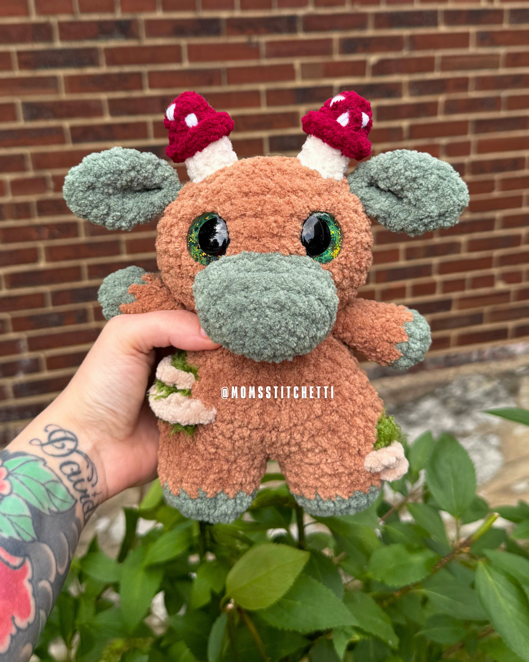 This crochet cow plush is made with super soft 100% polyester yarn.