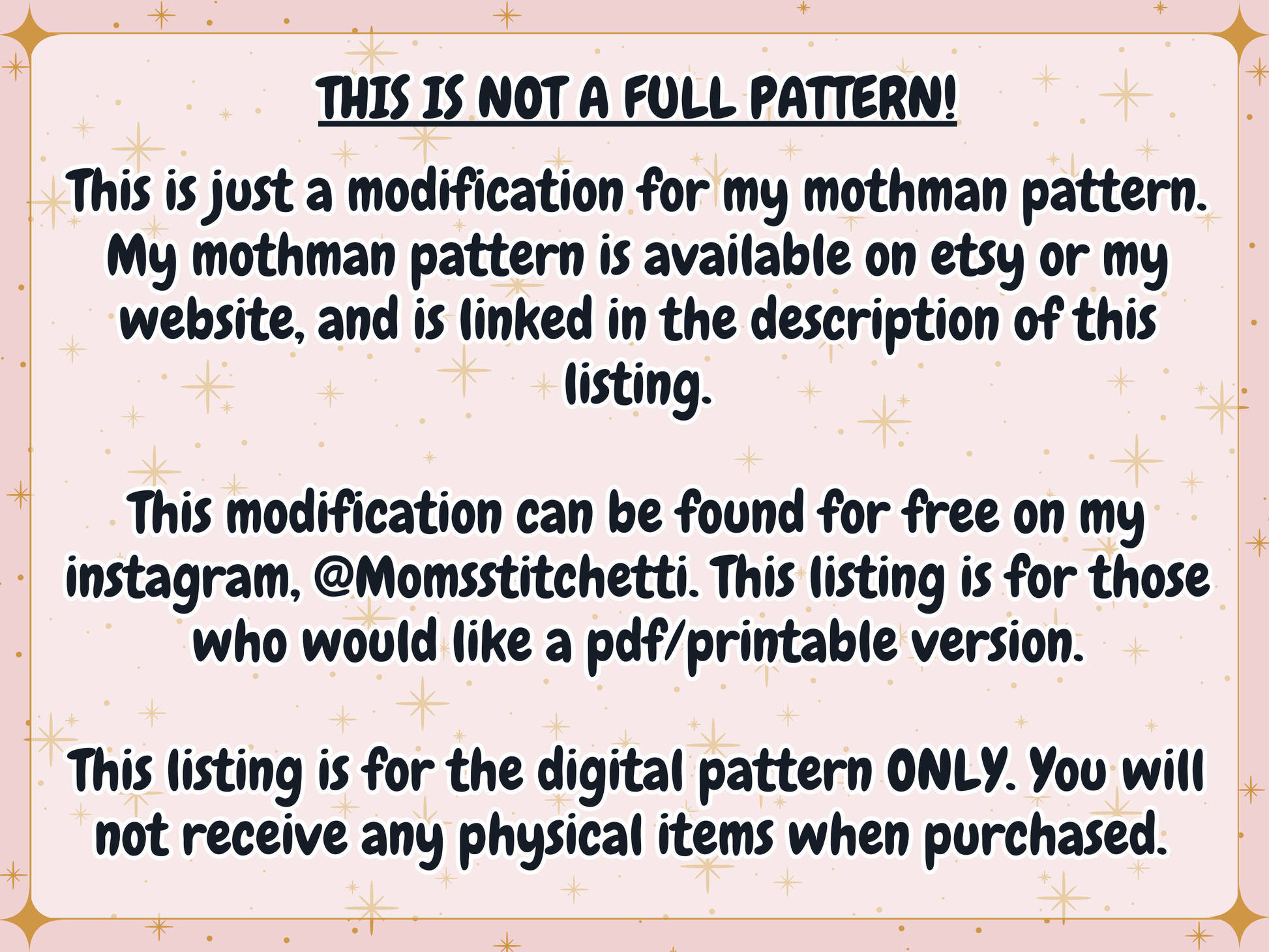 You may sell finished items created from this pattern modification as long as you provide design credit to Moms Stitchetti. If posting on social media, please tag @Momsstitchetti.