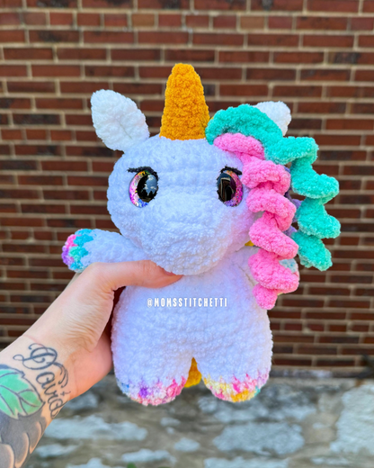 Say hello to Una the Unicorn and Hank the Horse! This crochet pattern is written in US terminology (English) and includes a list of materials, instructions, and photos to help you along! The body is one piece which means no sewing the legs, arms, tail, or head!